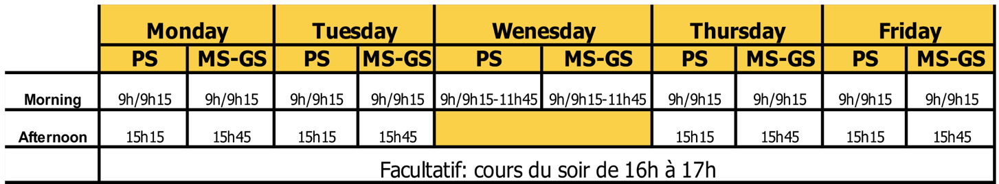 L’Ecole Bilingue is open from September to June following the French school year calendar (36 weeks).